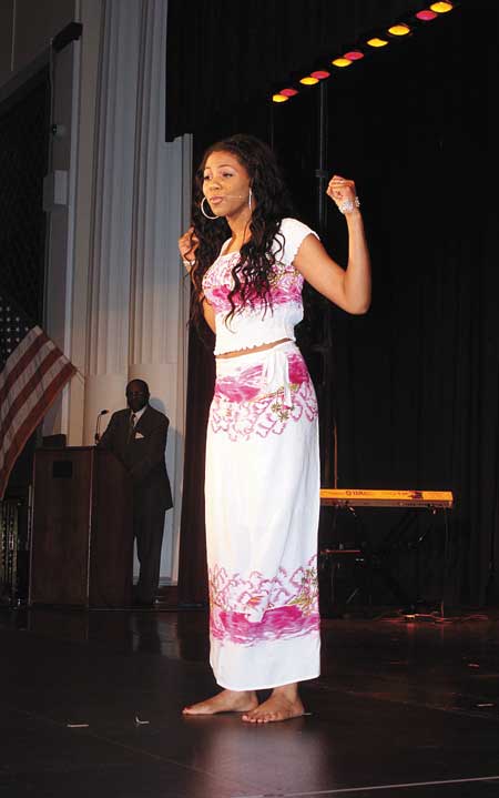 DELAYAH HUNTER performing spoken word during the talent portion of the program.