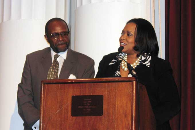 PUTTING IT ALL TOGETHER—Pictured above are: Director Debra Roberts, right, and her husband and master of ceremonies, Kenneth Roberts.