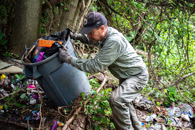Chernov, 52, and Kramer, 31, are the only two employees who pick up trash, part time, for Allegheny CleanWays, a nonprofit that specializes in cleaning up the millions of pounds of junk that have been illegally discarded across Allegheny County. The nonprofit focuses on sites with at least 50 pounds of trash, not small pieces of litter. They pick up garbage on private land and dangerous hillsides where city workers aren’t allowed to go.