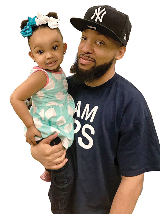 DADS PLAY—TYRESE GILBERT plays with his 3-year-old son, Benaiah, at the 10th annual March DADness basketball tournament, March 17, 2018 at Pittsburgh Obama. (Photo by Rob Taylor Jr.)