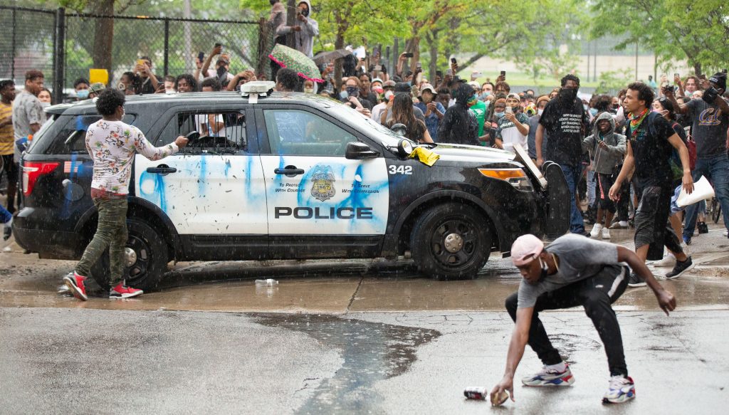 MINNEAPOLIS—Protests turned violent on Tuesday as anti-police activists smashed windows and vandalized police cars in response to the death of an African American man at the hands of four law enforcement officers.