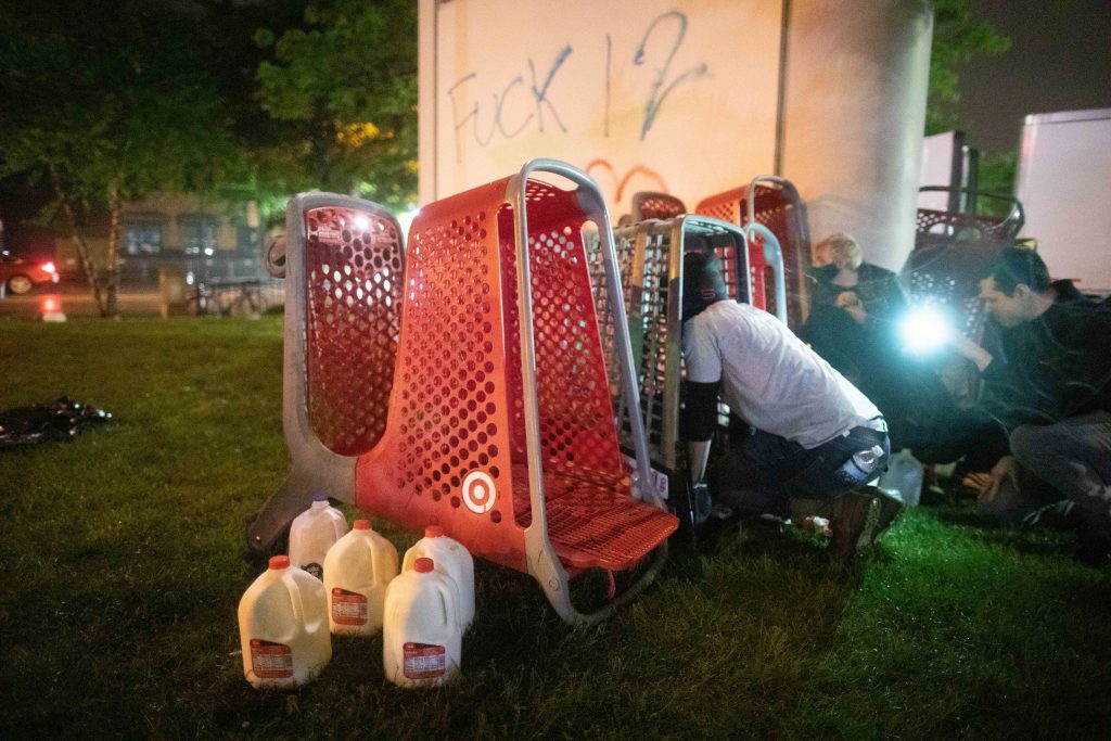 Protesters had walked more than 2 miles from Cup Foods, organized by activists who would later try to keep the march peaceful.