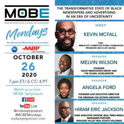 On October 26, 2020, Kevin McFall, 2020 Men of Excellence honoree, Inner-City Computer Stars Foundation, and Red Clay Digital, hosts #MOBEMondays. They have assembled a panel of newspaper, archive and advertising thought leaders for an engaging conversation about the transformative state of Black newspapers and advertising in an era of uncertainty.