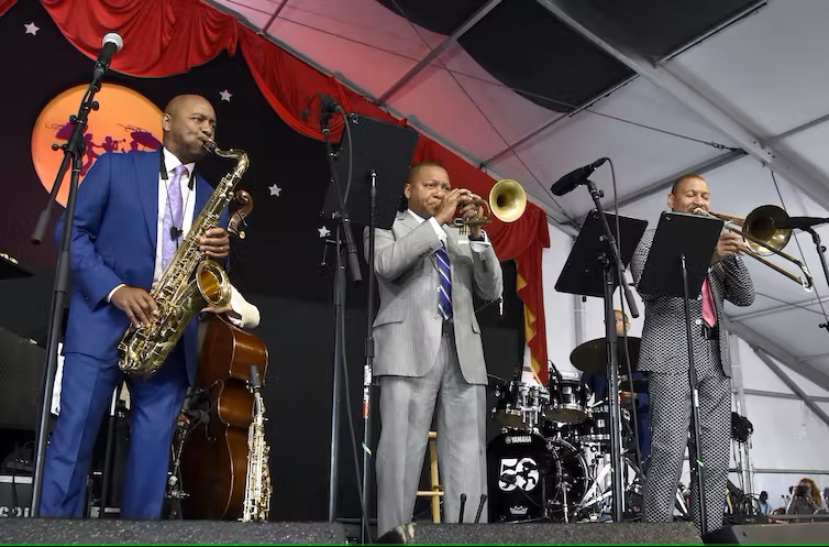 Branford, Wynton and Delfeayo Marsalis perform during a tribute to their father, Ellis Marsalis, in 2019. Tim Mosenfelder/WireImage via Getty Images
