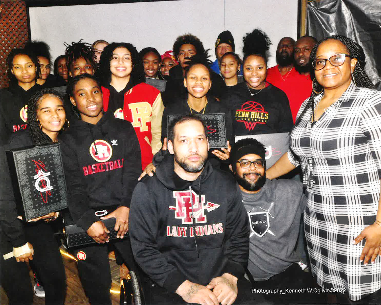 That is in part the attitude and actions presented by the newly established Noblemen Community Club founded and based in Penn Hills. Giving evidence that they practice what they literally preach. Pastor Mike Smith, the President of the club and Sheldon Oliver, Club VP and owner of the Noblemen Restaurant/Cigar Bar/Social Club, united their valuable years of trial, error and tested time to present a donation of notable proportion to the Boys and Girls varsity basketball teams at Penn Hills High School. Notable to be sure to the tune of $5,000-plus. Each of the 30 players received basketball game shoes for this season. As Pastor Mike stated, “It was important to present these outstanding student-athletes with top-quality game shoes they could be proud of and want to showcase. Thus, the trademark LeBron James for the boys and Kevin Durant for the girls.”