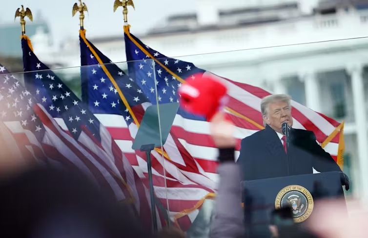 President Donald Trump speaks at a rally on Jan. 6, 2021, before the Capitol insurrection. Mande Ngan/AFP via Getty Images