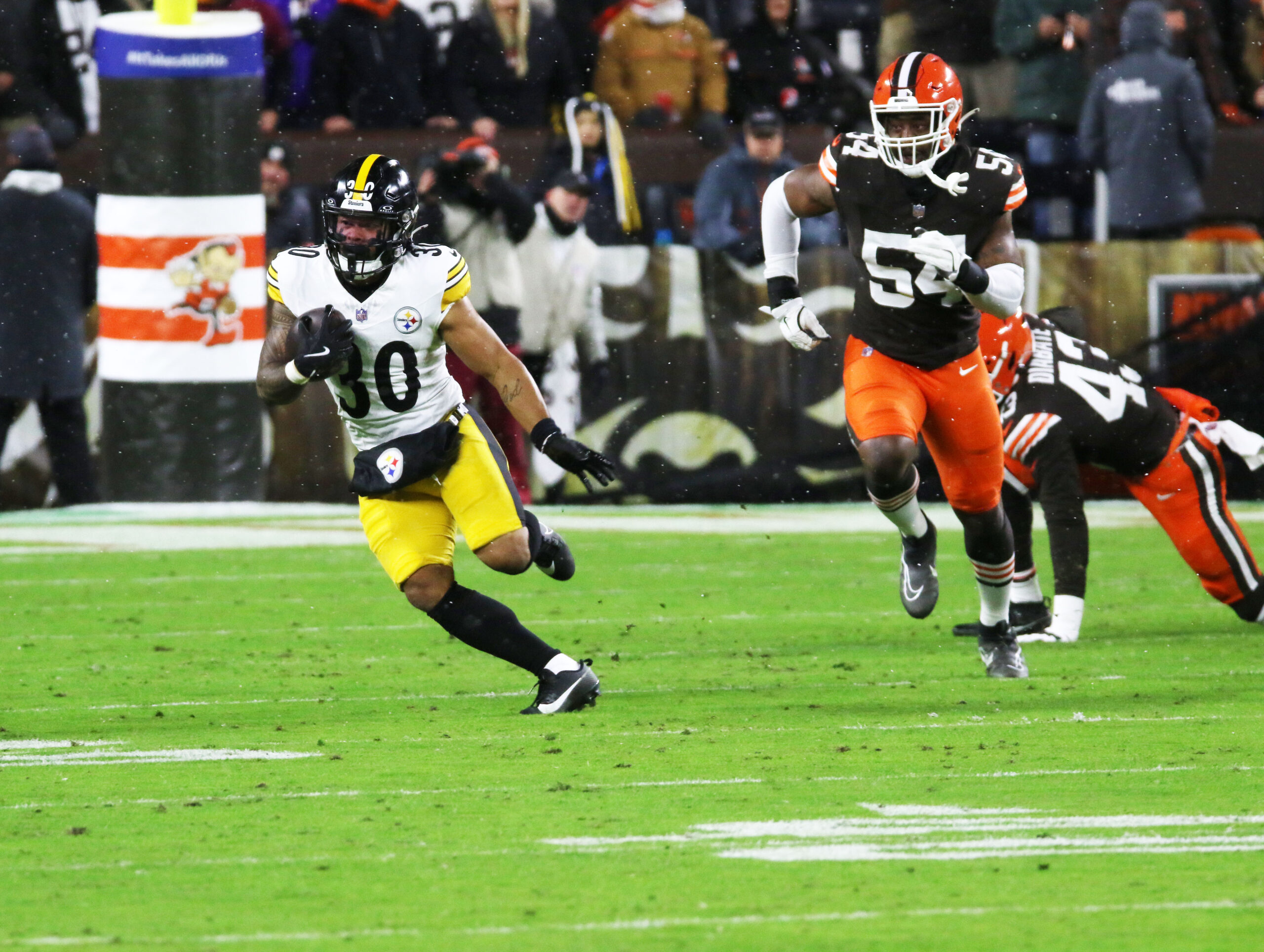 THE STEELERS’ JAYLEN WARREN RUNNING AWAY FROM THE BROWNS…