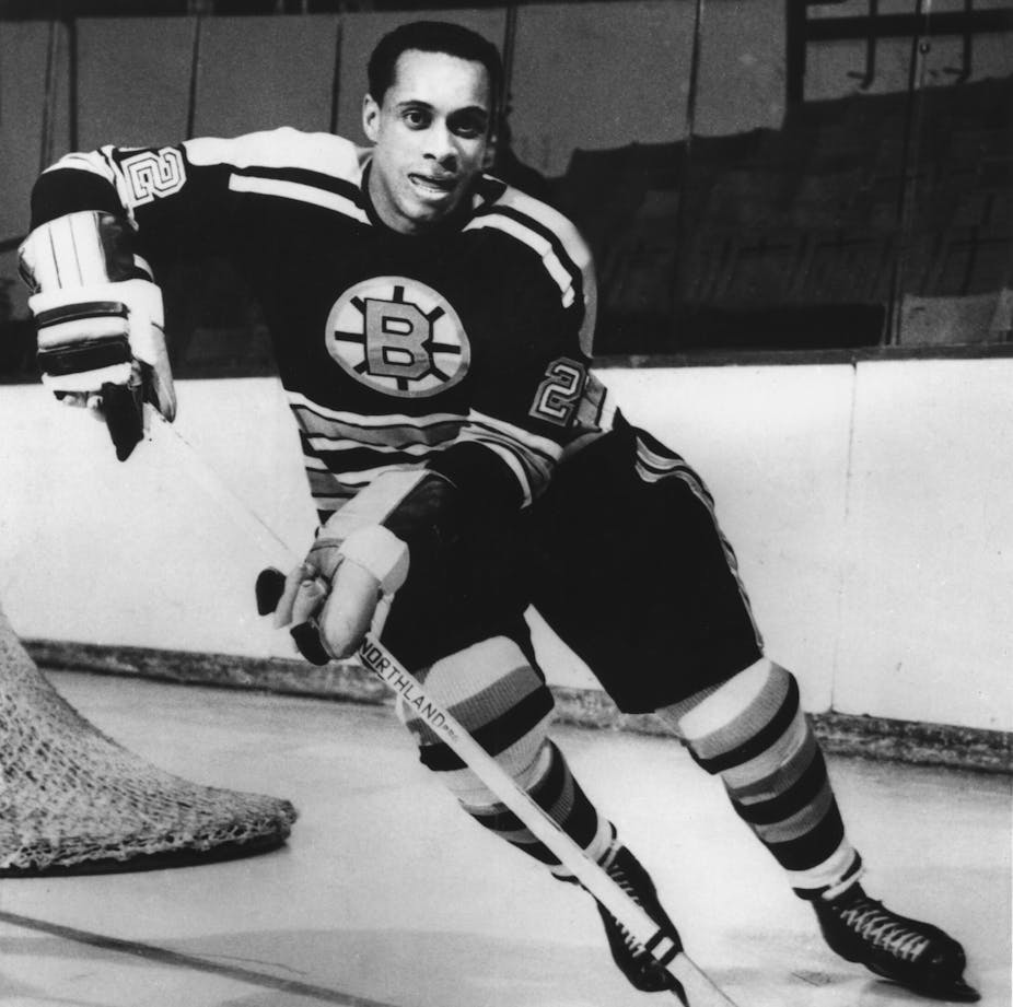 Willie O’Ree, the first Black NHL player, debuted for the Boston Bruins in 1958. The Root, CC BY
