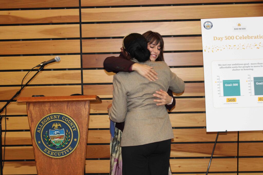 ALLEGHENY COUNTY EXECUTIVE SARA INNAMORATO HUGS ANDREA JOHNSON.