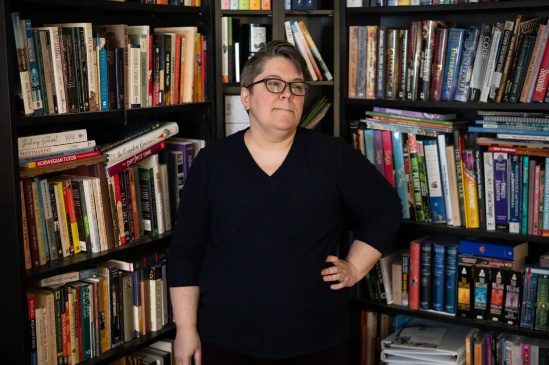 Peregrine Kelly, owner of Inner Prism Counseling, a Wilkinsburg-based psychotherapy practice, stands for a portrait, Thursday, Dec. 11, 2025, at their home office in Upper St. Clair. As the statemate in Washington over federal health insurance subsidies dragged on this fall, they used the money budgeted for their employees’ retirement plan to instead offer private health insurance. (Photo by Stephanie Strasburg/Pittsburgh’s Public Source)As workers and employees across the country seek insurance solutions beyond the fading subsidies, one local business owner pulled retirement plan funds to support private insurance options.